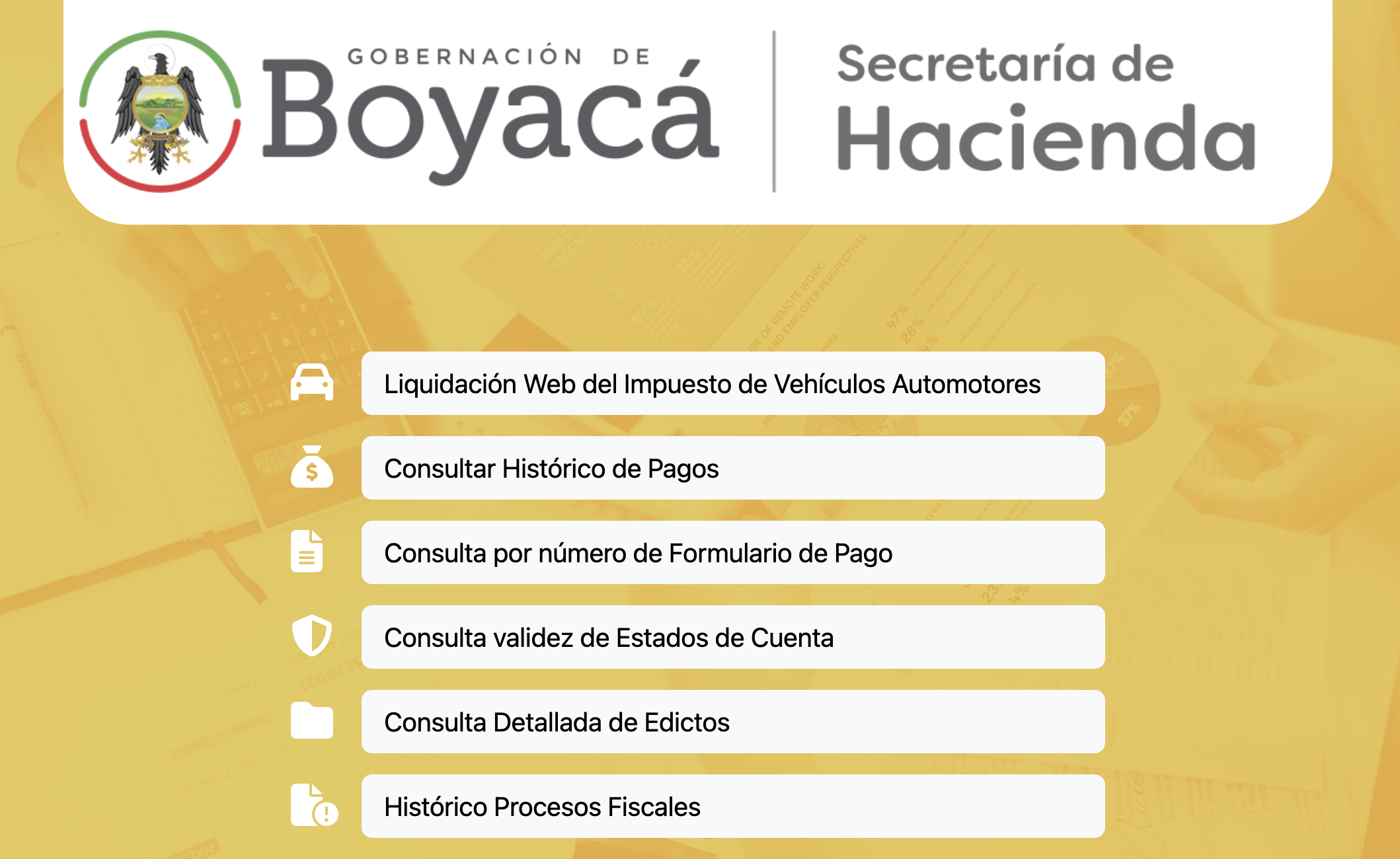 Enlace directo oficial: Liquidador web del impuesto de vehículos de Boyacá